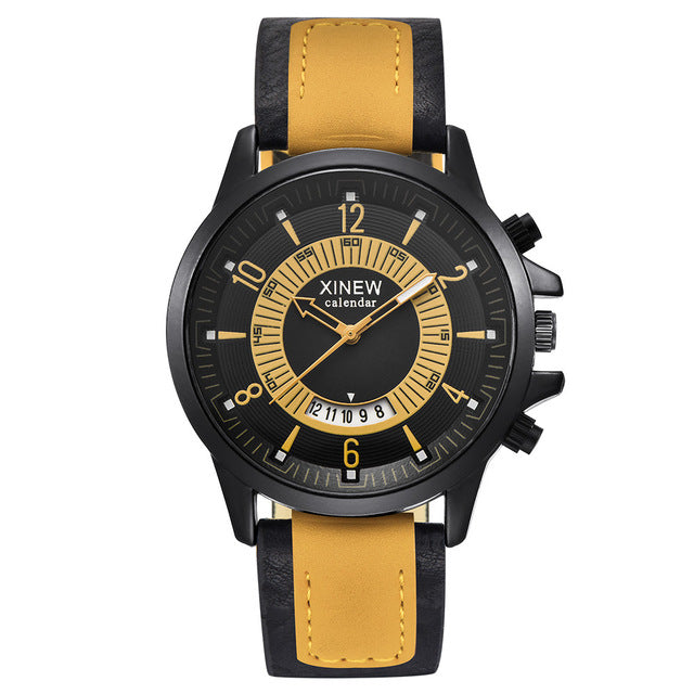 men watch wrist leather: zegarek meski z data